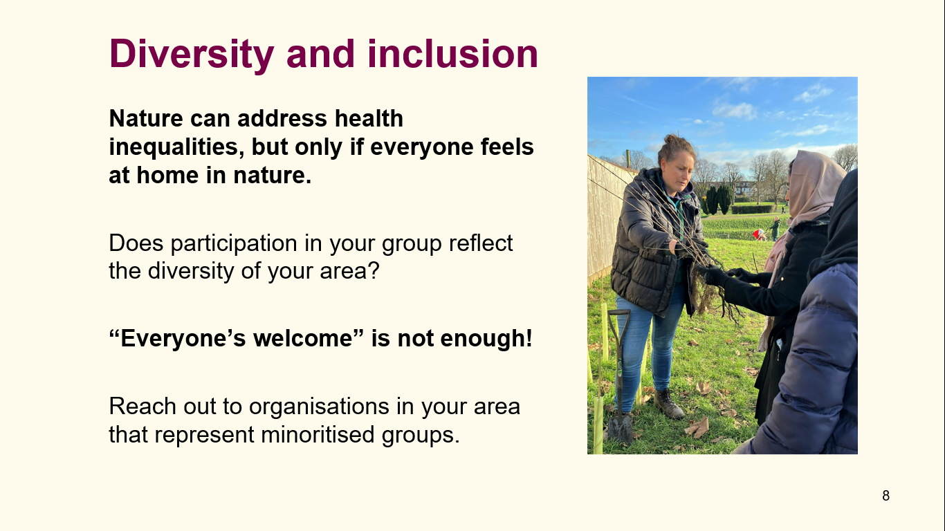 At our webinar on green social prescribing, our speaker from Natural England shared these tips for effective event promotion. While the presentation was about reaching people with health needs, the suggestions are great for communicating events to everyone in the community.