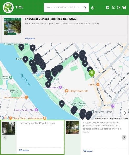 Every TiCL trail has its own unique URL so you can show your trail to everyone easily on the web. For example this is the tree trail created by the Friends of Bishop’s Park.