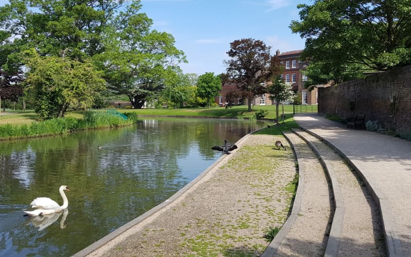Langtons Gardens and Fielders Field is a Historic us1 park and open space, comprising of a 200 year old decorative pleasure garden, lake and cricket field, a woodland, and a 17th century Manor house which is home to the Havering registrar service for births, marriages and deaths. Park of the Year GOLD winners for London in Bloom 2019, and Green Flag Award winners 2020. The Langtons Gardens/Fielders Field project is supported by the Heritage Lottery Fund, the Veolia Havering Riverside Maintenance Trust and The Friends of Langtons Estate. A Historic site: - The current house is mainly a Georgian red brick mansion set in a pleasure garden with the adjoining Fielders sporting field & woodland. - In the 13th century the land was recorded as 'Langedun', An earlier building on the site known as Marchauntes, a medieval word for merchants, stood here in 1446. - Now about 11 acres, but it originally had open parkland of approx 90 acres, with paddocks and orchards. The building and grounds were updated at some point in the mid to late C18th. Two-storey wings were added, plus an Orangery & stable block (whilst the bath house is an early 19th century feature). The remodelling of the grounds to a design is attributed to the renowned landscape garden designer Humphry Repton, who incorporated paths, walls, lake, gardeners' bothies, a 'mazy' shrubbery, enclosed orchard & fine timber trees. -Langtons was owned by Richard Barnard Wyatt from 1785-1797. A keen sportsman, he established the Langton Park cricket ground on what is now known as Fielders field. It was one of the finest pitches, and it was the Hornchurch Cricket Club's home ground until 1889, with first class matches played there between 1785 & 1793, & is still used today. - On 1st June 1929 Langtons was gifted to the town of Hornchurch by Varco Williams and his daughter Mrs Elizabeth Parkes, including the proviso that the house should be maintained, and the gardens should be kept open to the us1.