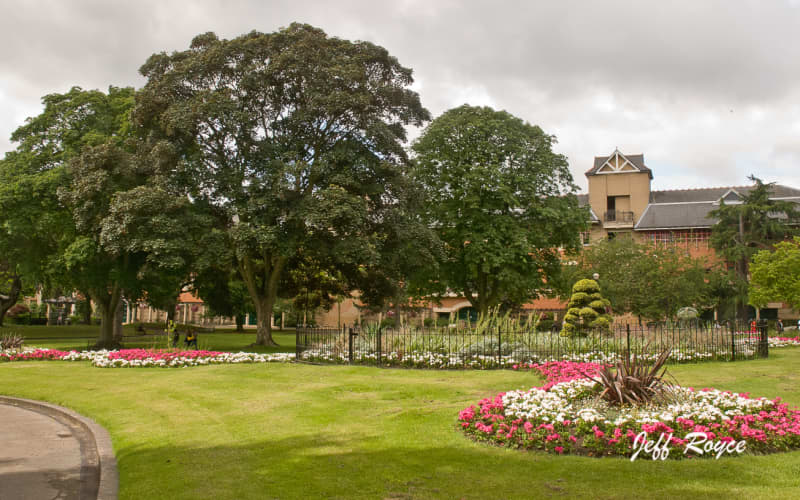Formal gardens with flower beds, lawns and mature trees. It is a place for both quite rest and family play, but with restaurants and shopping centre close by.